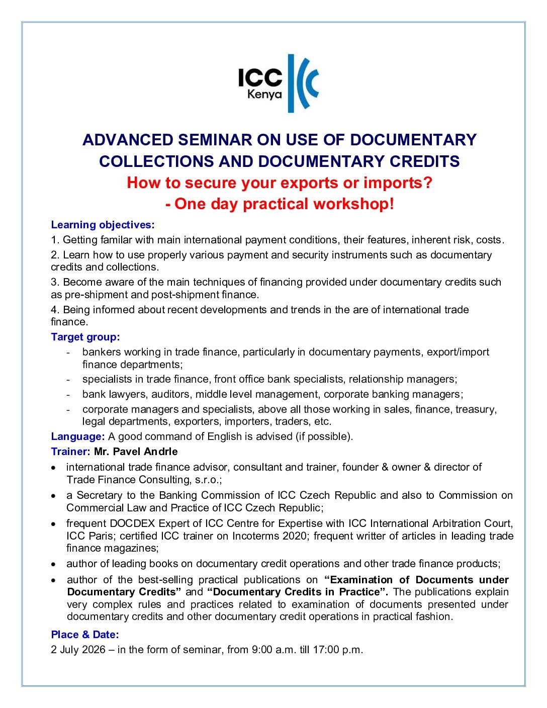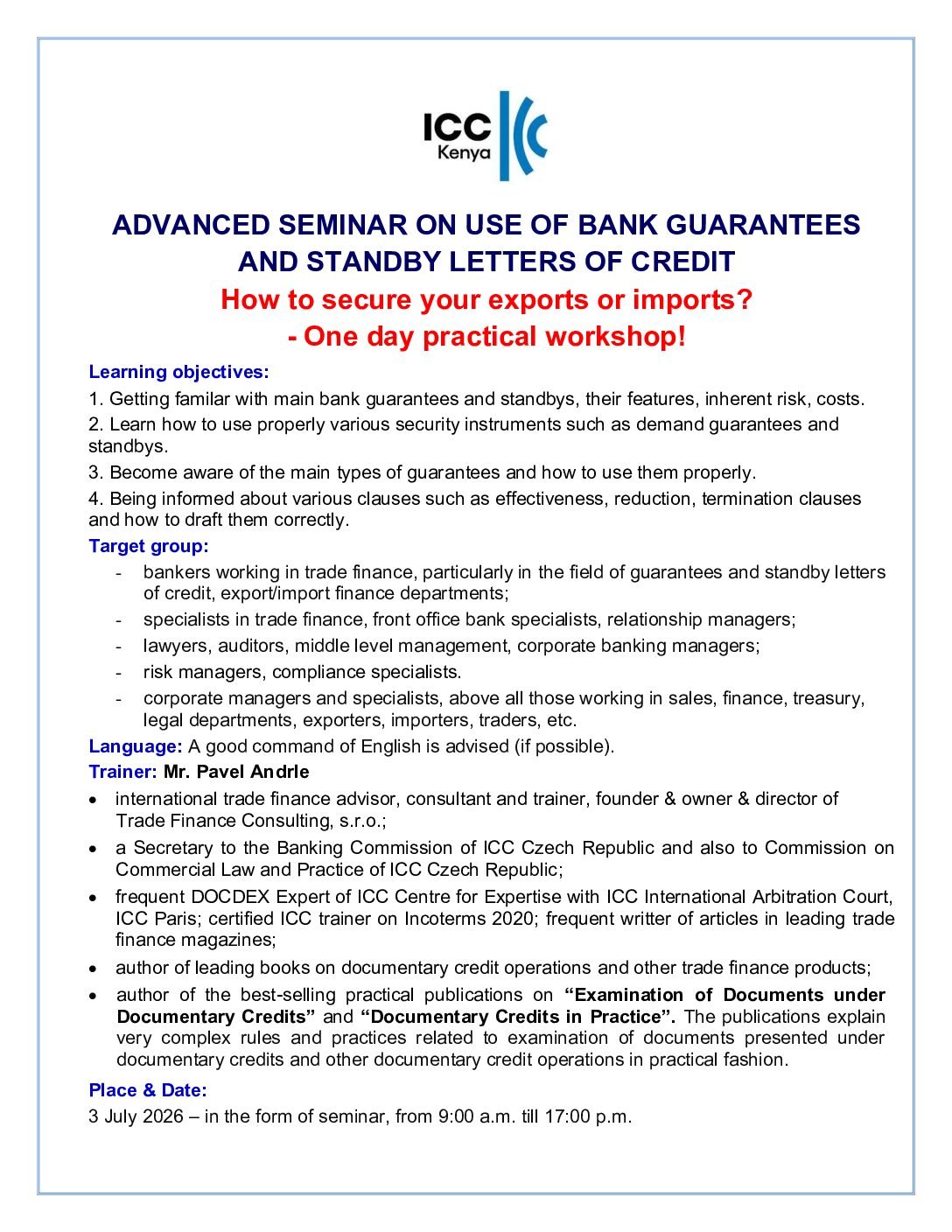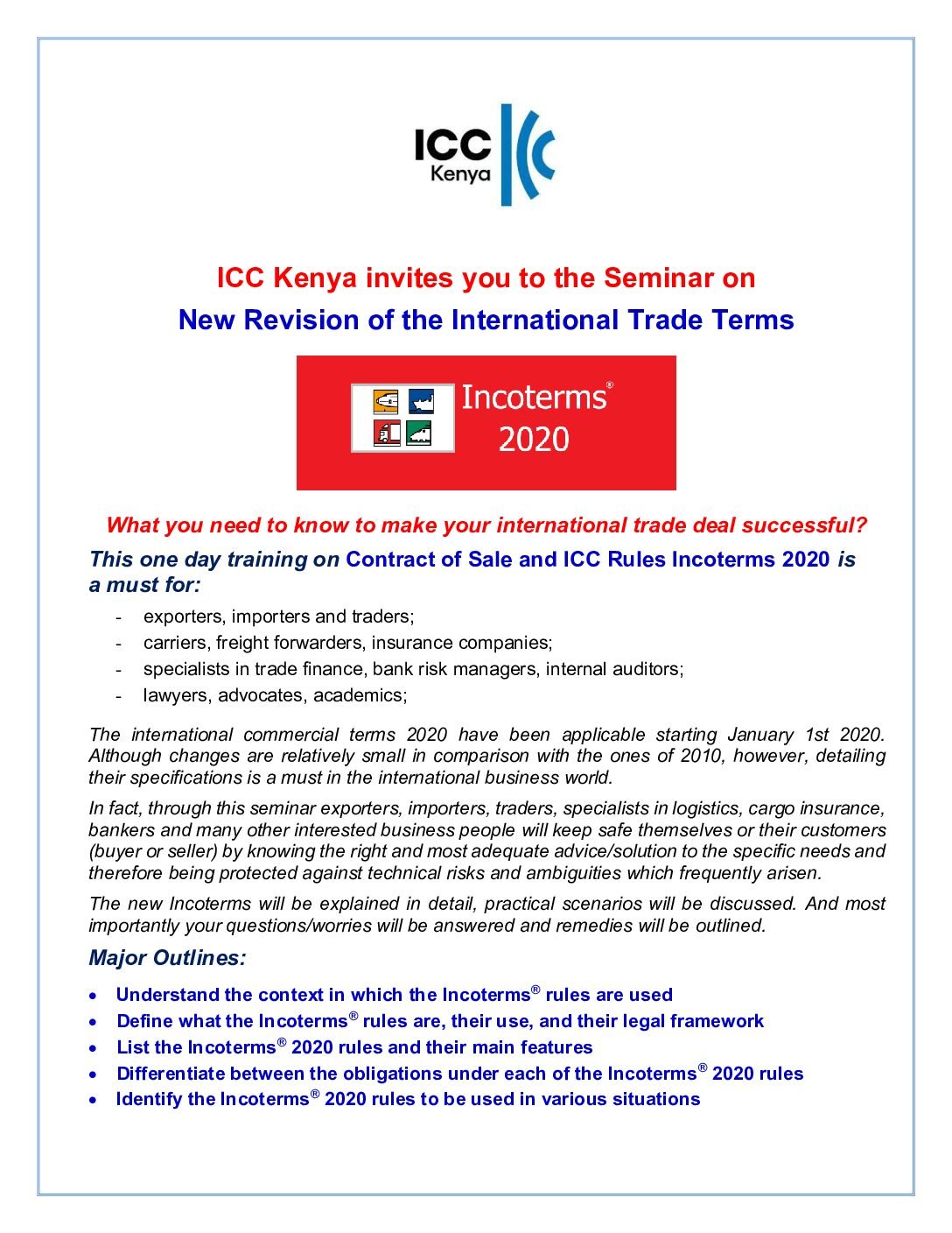 * 10% discount on the above rates for ICC Kenya members.